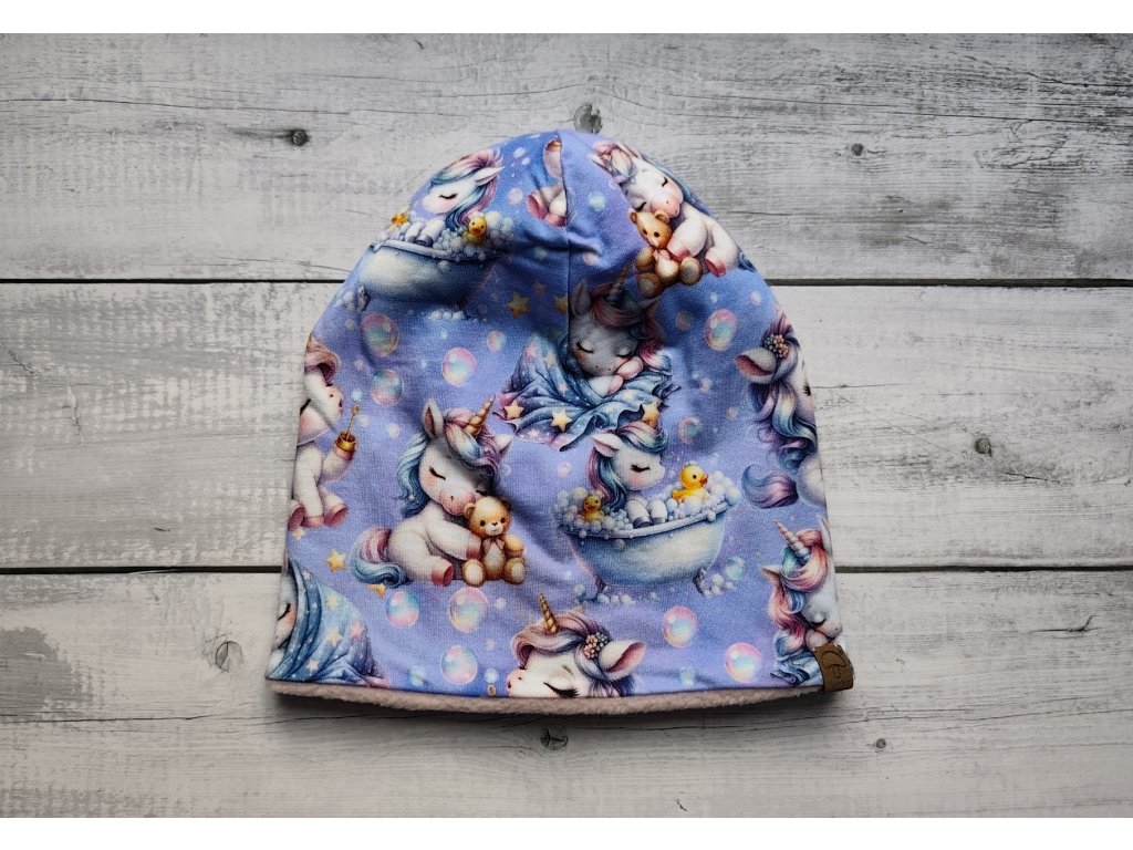 Zimní zateplená čepice je ušitá z teplákoviny a fleecu. Střihem je jedná o tzv. homelessku. Díky zateplení je čepice ideální do zimního počasí.